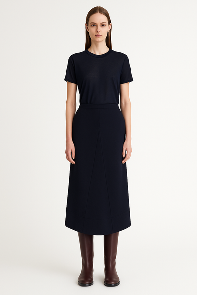 Tailored, cool, and effortless. The Gabo Skirt draws from the construction of the Gabo Pant, reimagined as a fluid, sculpted silhouette. Cut in wool gabardine that moves with quiet structure — it carries a sense of ease and form.