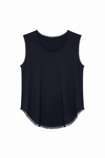 Our double layer silk chiffon t is back and inspired by Yves Klein's truest blue. As seen here in sultry weather over a chocolate brown bikini, looks great with your favorite pair of old Levi's, a pair of trousers, under a suit jacket or with a chic evening arty party skirt.