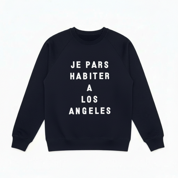 Special editiion 100 Percent cotton long sleeve JE PARS HABITER A LOS ANGELES sweatshirt with Embroidered letters in celebration of a decade of this design originally designed in 2015.