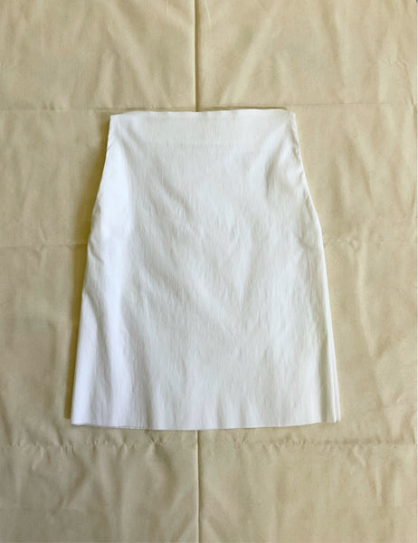 Boat neck trapezoid shaped blouse. Raw edge hem.
